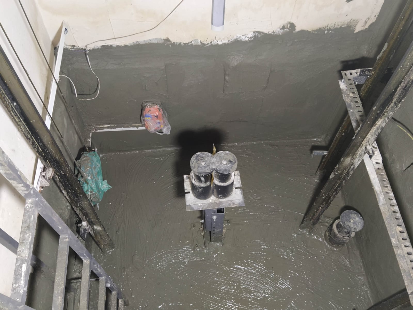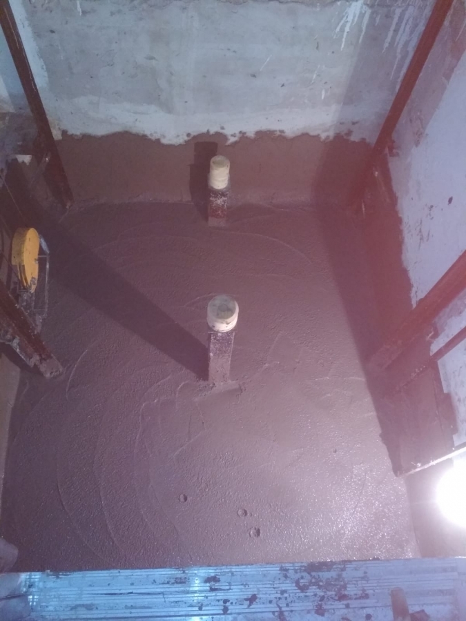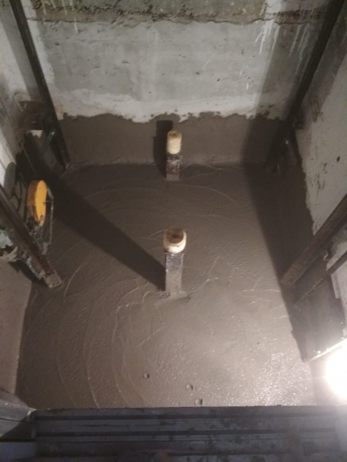 - BETON İÇİNE SU GEÇİRİMSİZLİK KATKISI: Asansör kuyusu kalıp ve demir donatı hazırlanır santraldan gelen betonu içine su geçirimsizlik katkısı olan Su yalıtım malzemesi beton mikser içine gerekli miktarda koyulur 5 dakika karıştırılarak beton kalıba yerleştirilir, beton içine yapılan katkı betonu suya karşı kilitler ve su geçirimsiz hale getirir betonda oluşacak su köprüsü teşkil deden yerler izomortar hidrofobik beton onarım harcı ile onarılmalı.
